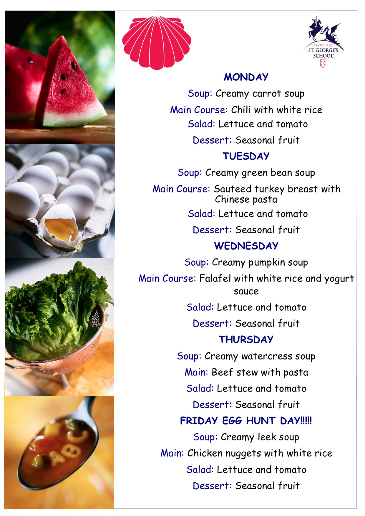 Menu from the 23rd to the 27th of March 2026